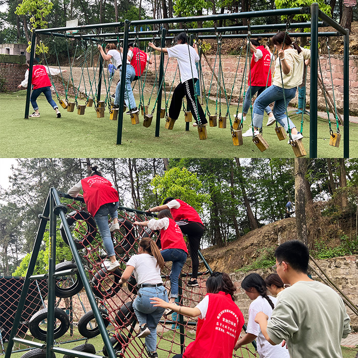 然后就是拓展訓(xùn)練,我們將成員分成兩隊,分別選出隊長,各自的隊員們前仆后繼,互相協(xié)助,最終我們的紅隊獲得了勝利。