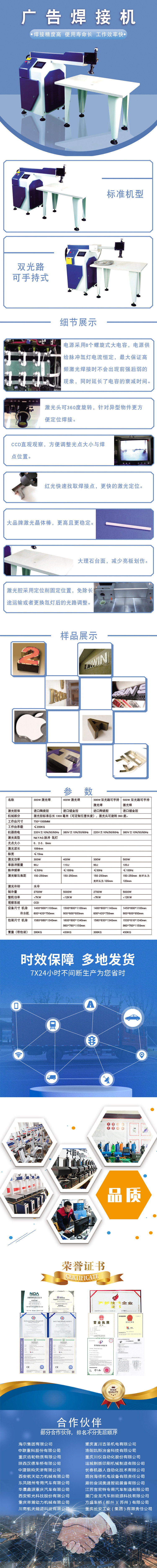 廣告字焊接機也叫廣告字激光焊接機,主要是通過激光熱熔焊接,焊縫美觀,應(yīng)用于各種不銹鋼字,LED發(fā)光字,LOGO標識,標牌,廣告字等產(chǎn)品的快速精密焊接。