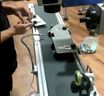 按鈕開(kāi)關(guān)流水線光纖激光打標(biāo)機(jī)出口機(jī)