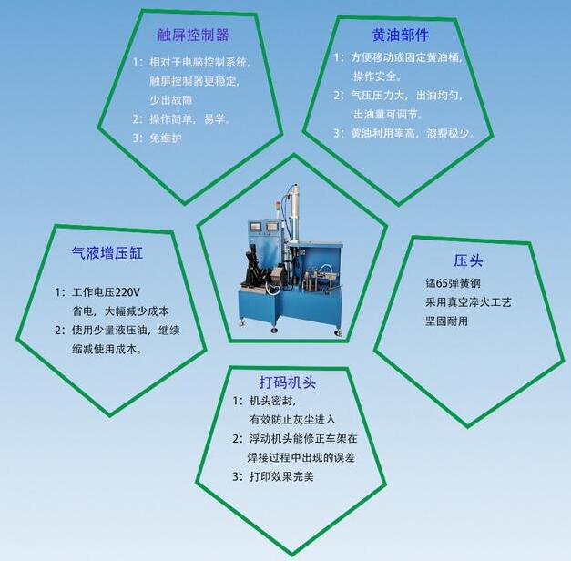 五位一體氣動(dòng)打標(biāo)機(jī)可以打標(biāo),可以加黃油,可以壓鋼碗,一體機(jī)價(jià)格68000元。