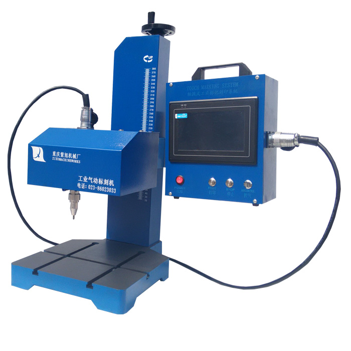 氣動針式打標機可分為臺式氣動打標機和便攜式氣動打標機,上圖款為便攜式氣動打標,機頭小巧,便于攜帶,打標范圍80mm*40mm,也可定制,合適打車架號、發(fā)動機號、鋼瓶、鋼板等大型不便移動的產(chǎn)品上作業(yè)。