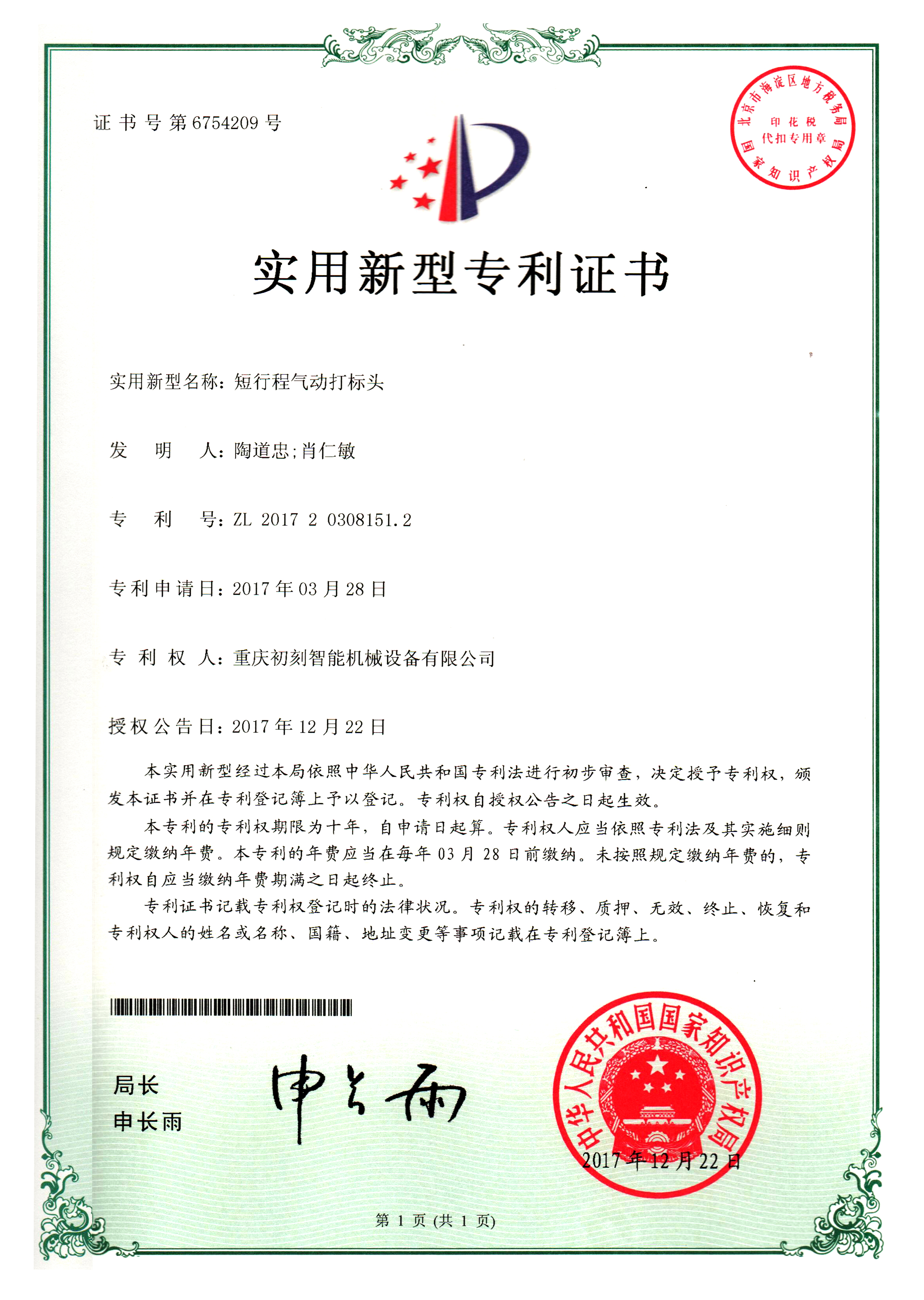 重慶初刻智能機(jī)械設(shè)備有限公司有多項(xiàng)實(shí)用新型專利和發(fā)明專利,和軟件系統(tǒng)專利,技術(shù)實(shí)力強(qiáng)。
